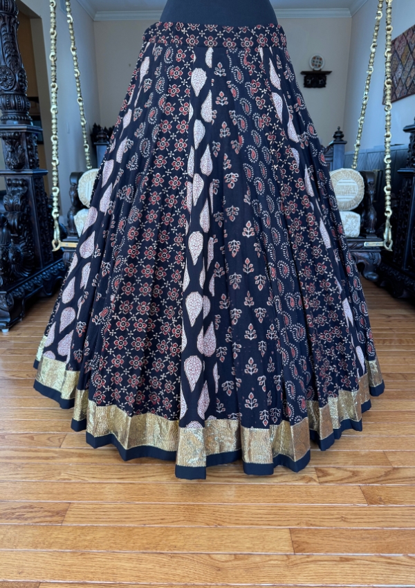 ✨ Black block print chaniya with 8-meter flare