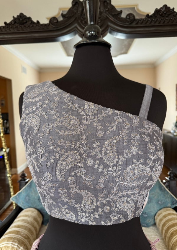 Dazzle at any celebration with this Grey Embroidered Crop Top with Lehenga. The shimmer lehenga features elegant sequin stripe detailing, paired with a beautifully embroidered crop top for a refined look. A soft grey dupatta completes this graceful set, making it a versatile choice for weddings, engagements, or festive parties.