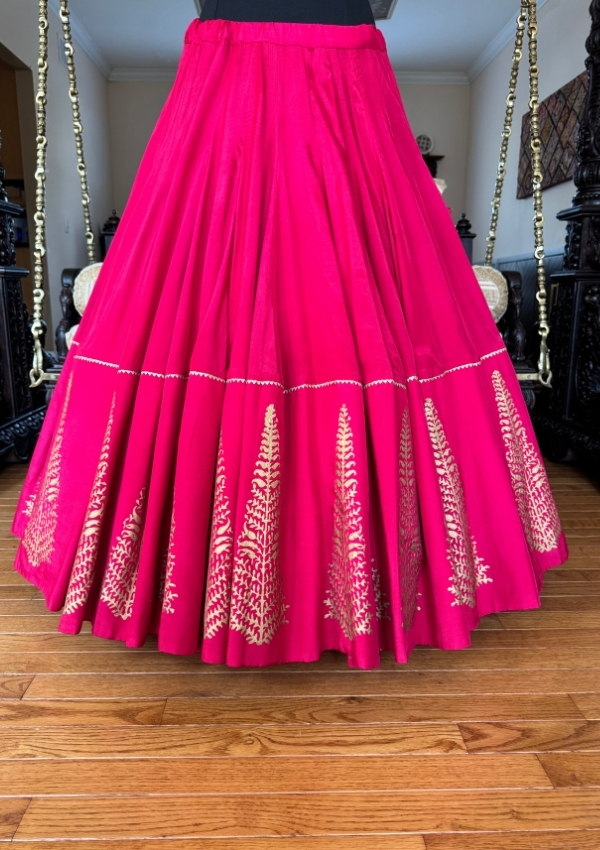 ✨ Rani chaniya with 8-meter flare and gold block print border