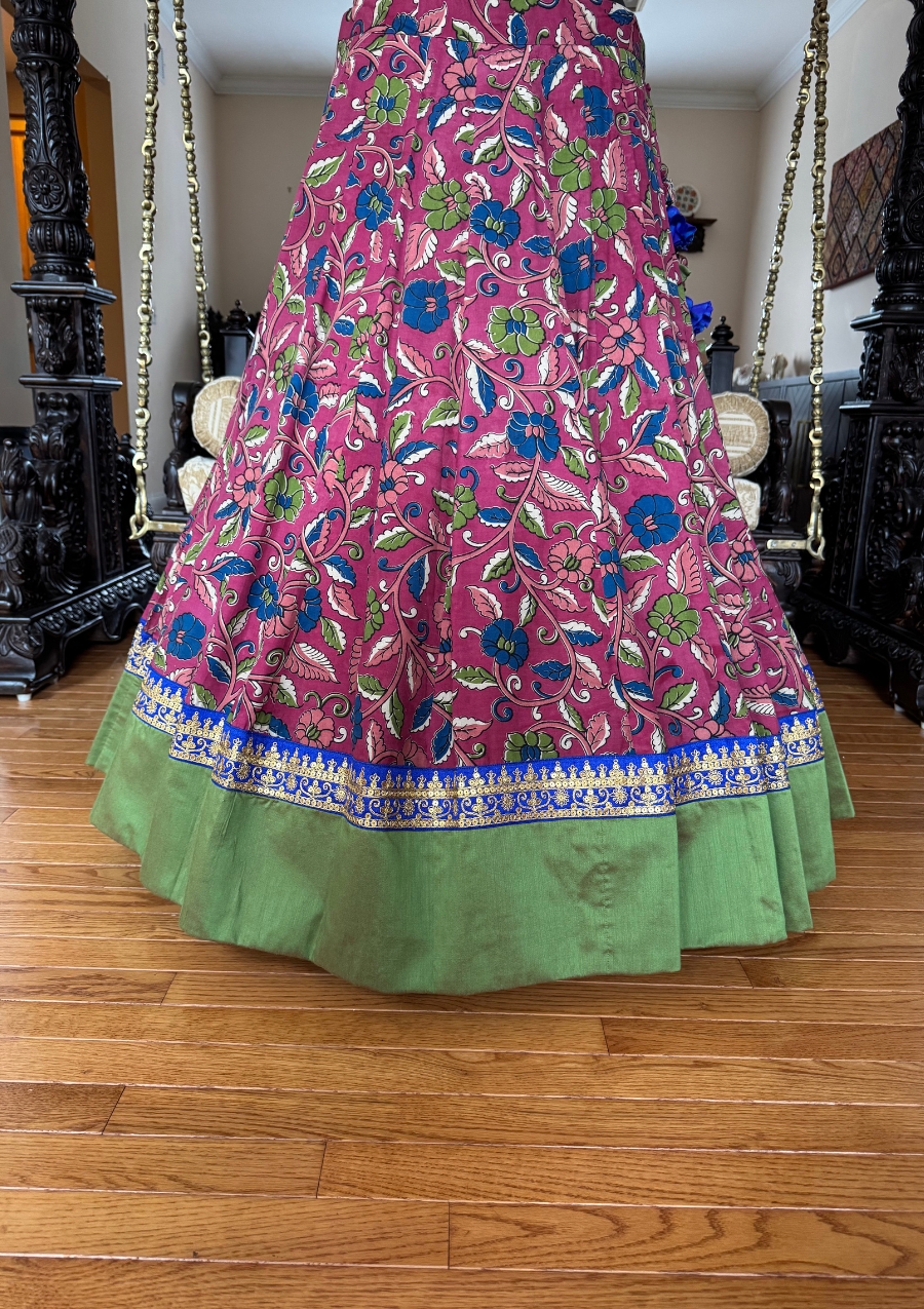✨ Rose pink kalamkari lehenga with green border