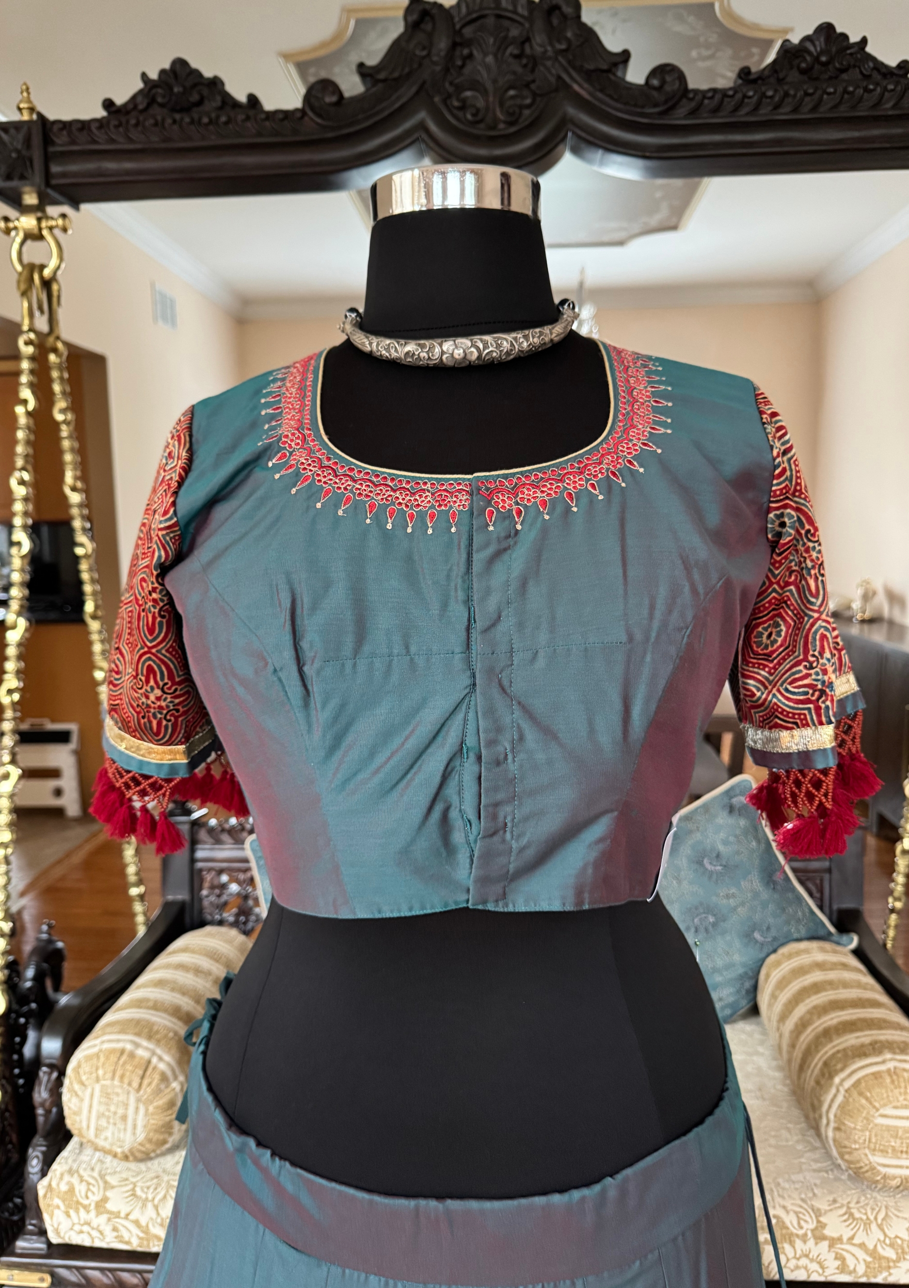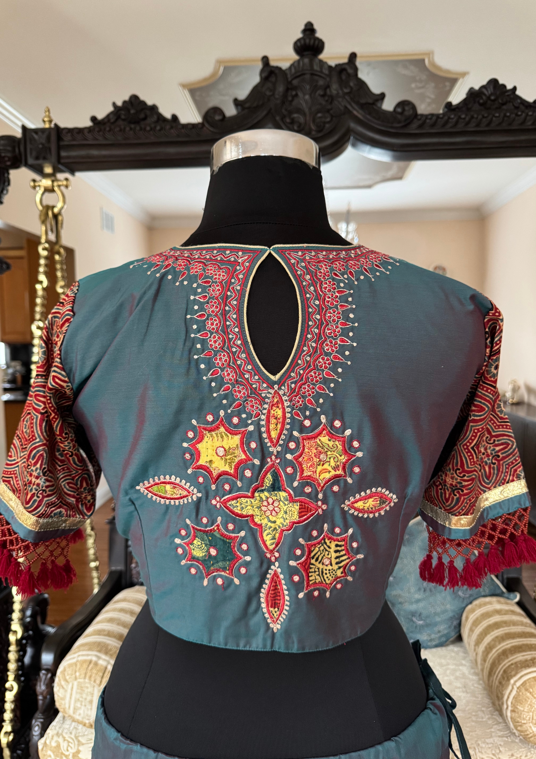 ✨ Teal Ajrakh embroidered blouse (42/44/46)