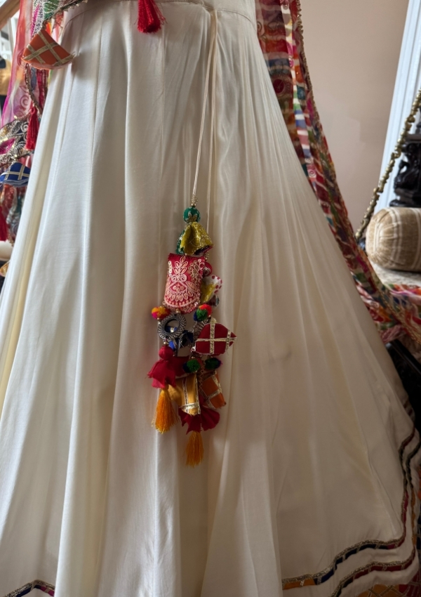 ✨ White chaniya with 8-meter flare and multicolor gota border